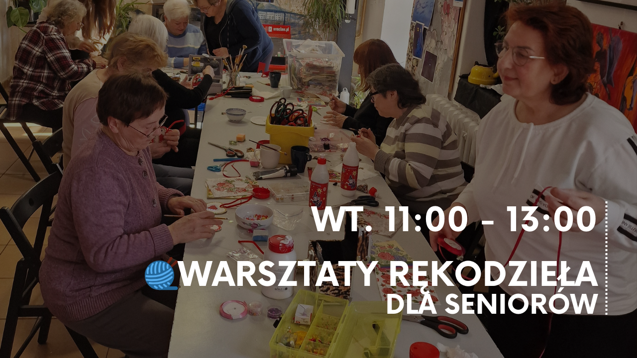 Spędź wtorkowe popołudnia w gronie Seniorek i Seniorów na twórczych zajęciach rękodzielniczych, podczas których poznasz pełen wachlarz technik rękodzielniczych: od szydełkowania i wyszywania, po ryto-sztukę, quilling i wikliniarstwo.