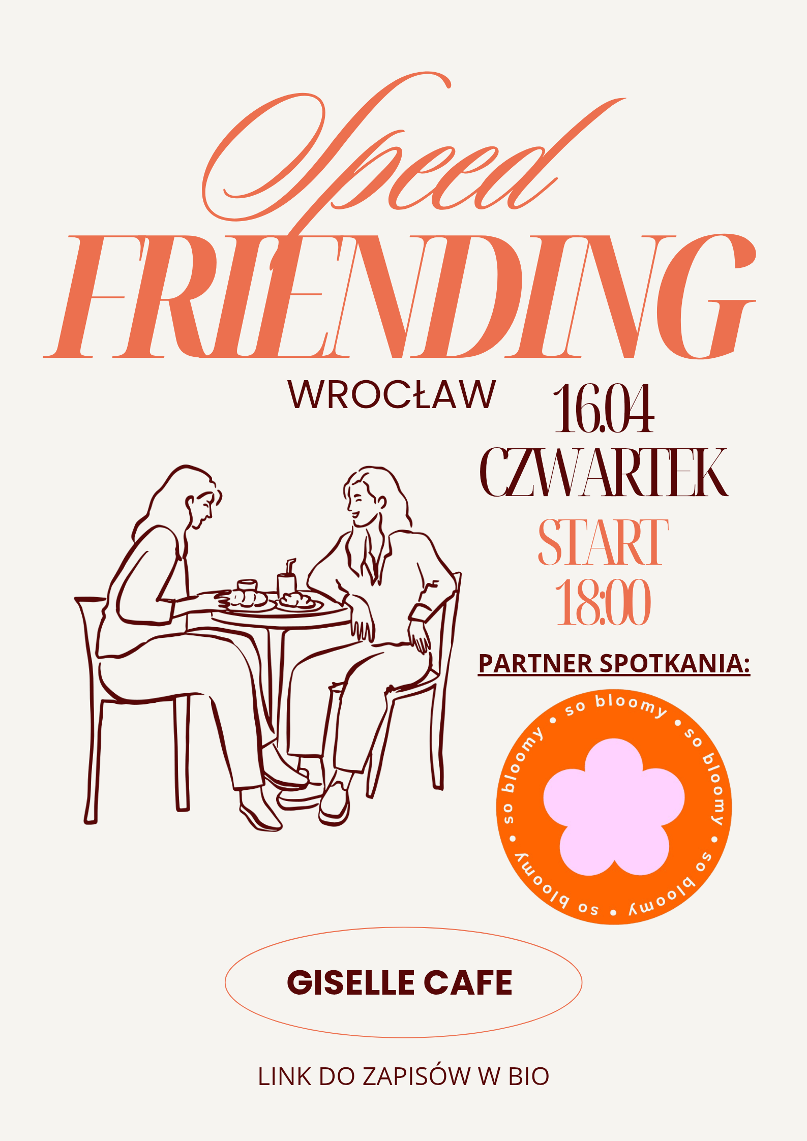 Zapraszamy na pierwszą edycję SpeedFriending | girls only we Wrocławiu. To idealna okazja, aby poznać nowe osoby, porozmawiać i nawiązać wartościowe znajomości w swobodnej atmosferze.