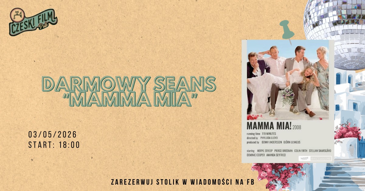 Zapraszamy do pubu Czeski Film na wspólne oglądanie kultowego musicalu „Mamma Mia!”. Przyjdźcie poczuć wyjątkowy klimat, zanurzyć się w greckiej atmosferze i dźwiękach największych przebojów ABBY — bo kto nie zna choć jednego refrenu?