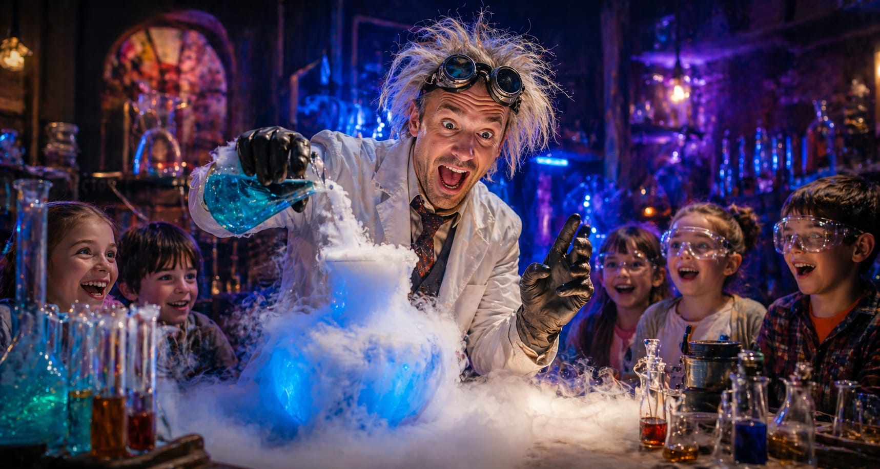 Podczas spotkania Szalony Naukowiec zabierze Was do świata widowiskowych doświadczeń i efektów rodem z filmowego planu.