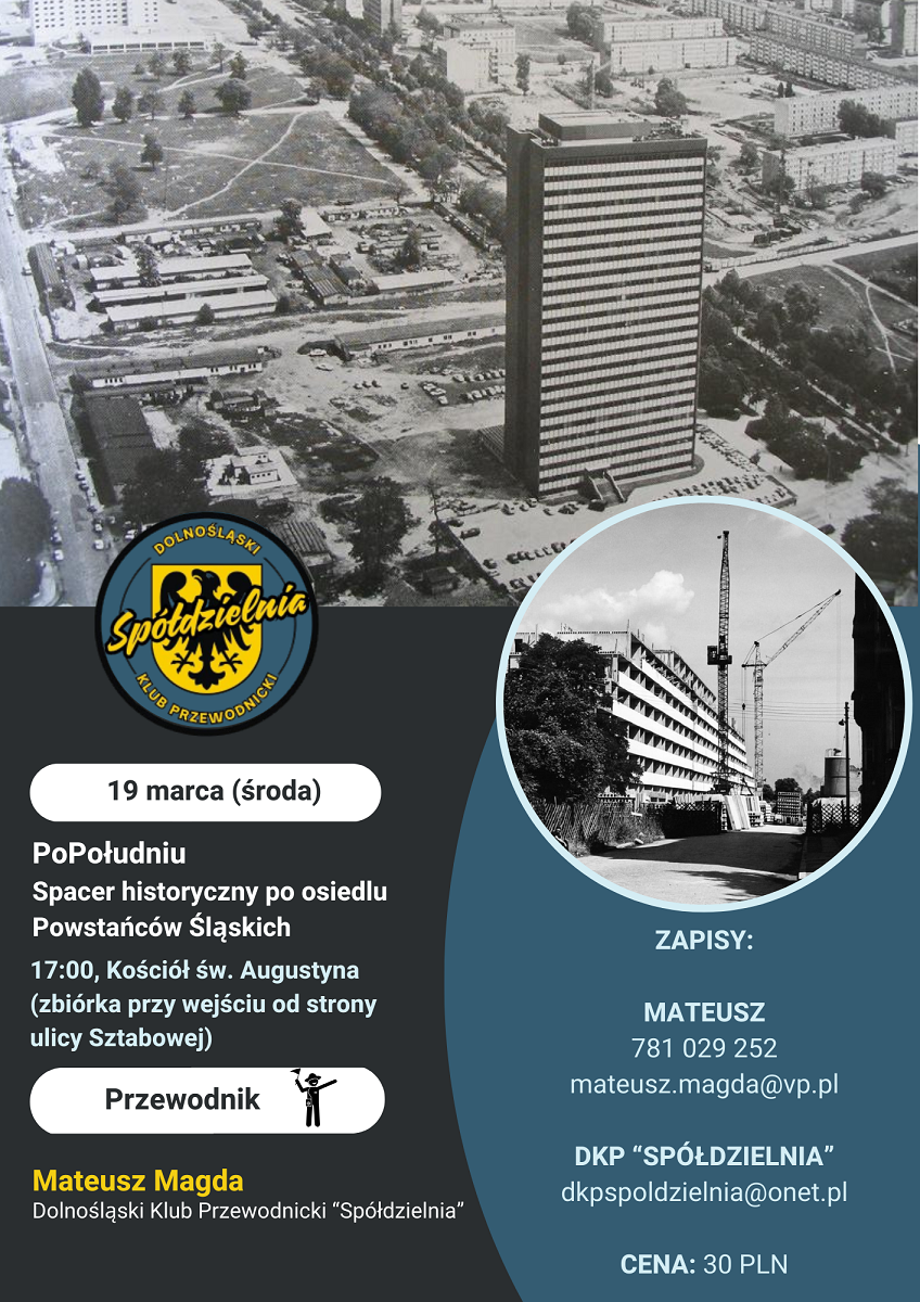 Dolnośląski Klub Przewodnicki „Spółdzielnia” zaprasza na spacer po skrywającym wiele tajemnic wrocławskim osiedlu Powstańców Śląskich, zwanym też osiedlem Południe.
