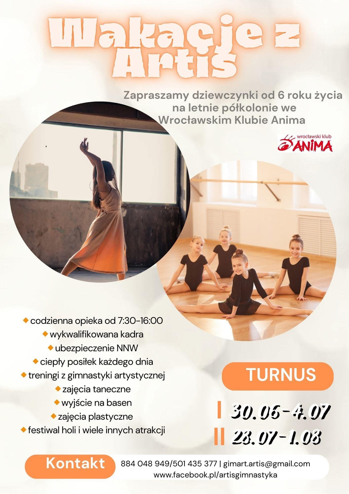 Z radością informujemy, że w nadchodzące wakacje Artis organizuje letnie półkolonie z gimnastyki artystycznej dla dziewczynek od 6. roku życia!