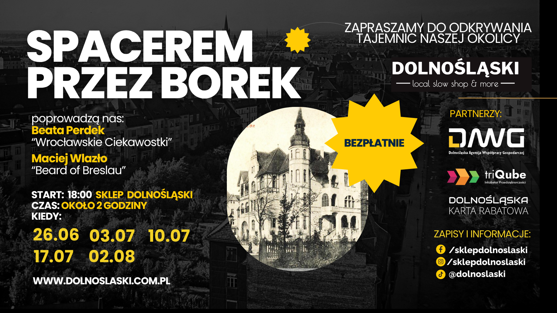 Z ogromną radością zapraszamy Was do udziału w wyjątkowej letniej inicjatywie „Spacerem przez Borek” – serii bezpłatnych spacerów tematycznych po jednej z najbardziej fascynujących części Wrocławia.