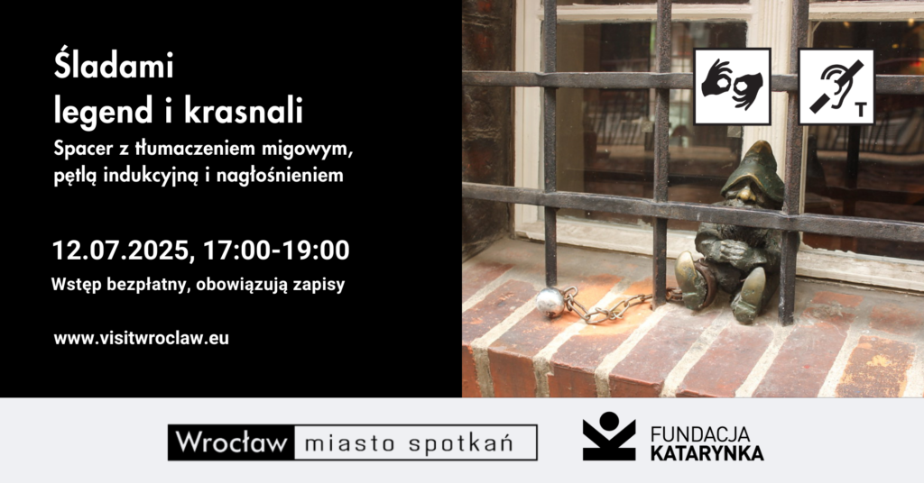 Zapraszamy na spacer Śladami legend i krasnali z tłumaczeniem migowym, pętlą indukcyjną i nagłośnieniem. Oprowadza Ewa Pluta.