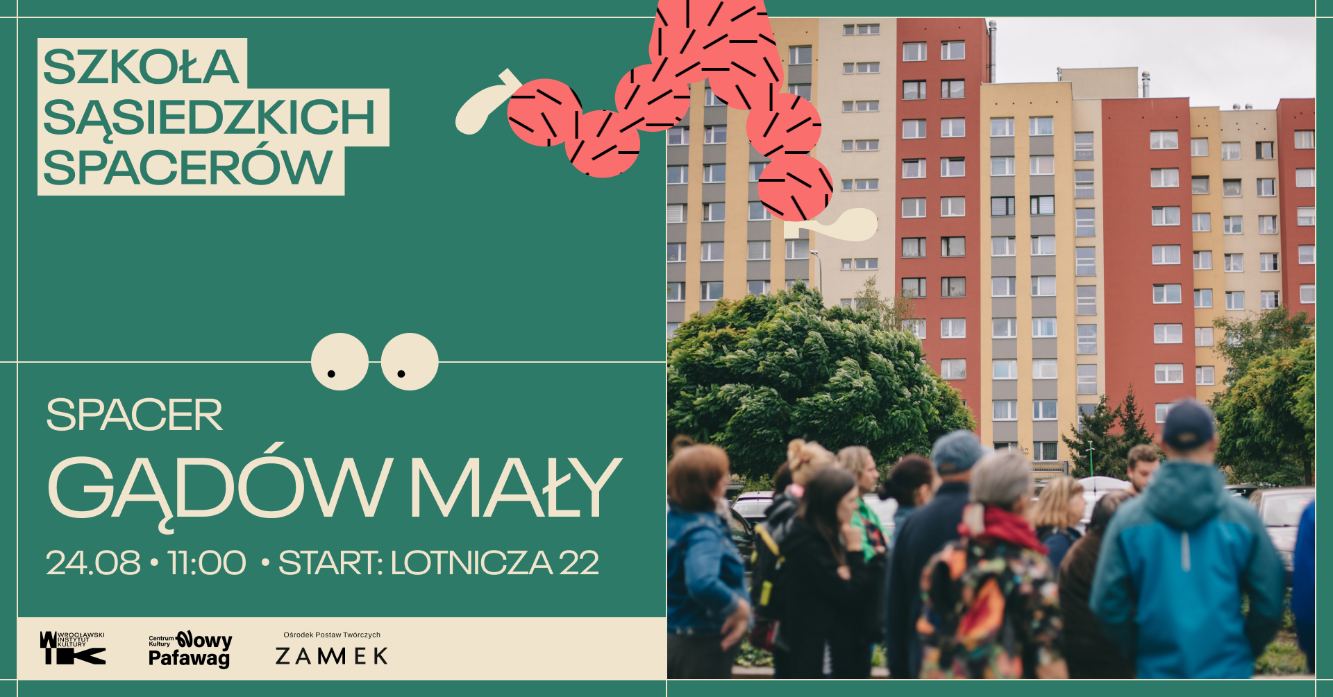 Przyjdźcie z rodziną, sąsiadami, psem lub znajomymi, załóżcie wygodne buty, zabierzcie sąsiedzką ciekawość i otwartą głowę, by wspólnie odkrywać przestrzenie, wspomnienia i historie z Gądowa Małego!