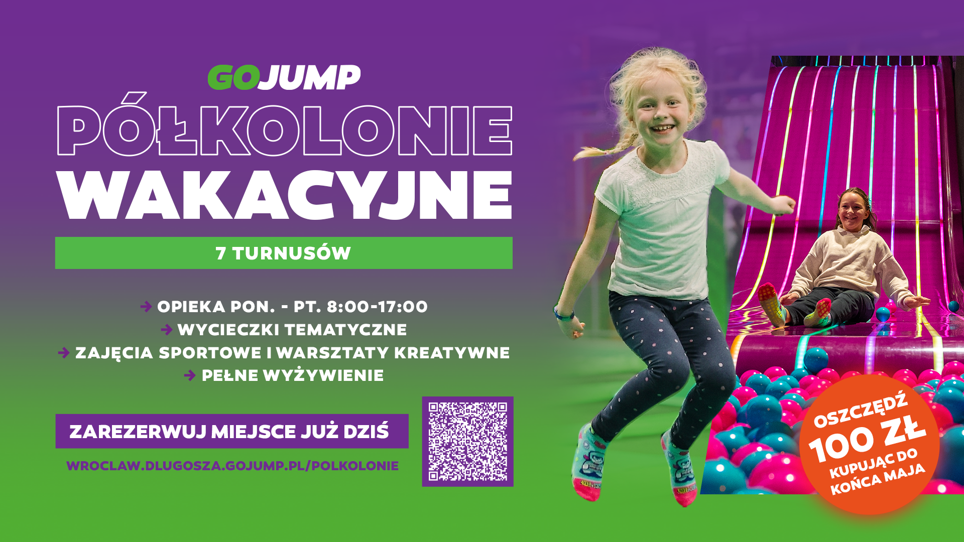 Szukasz pomysłu na mega wakacje dla swojego dziecka? Wskakuj do nas na półkolonie wakacyjne 2026! Przygotowaliśmy turnusy pełne sportowych emocji, śmiechu i kreatywnej zabawy.