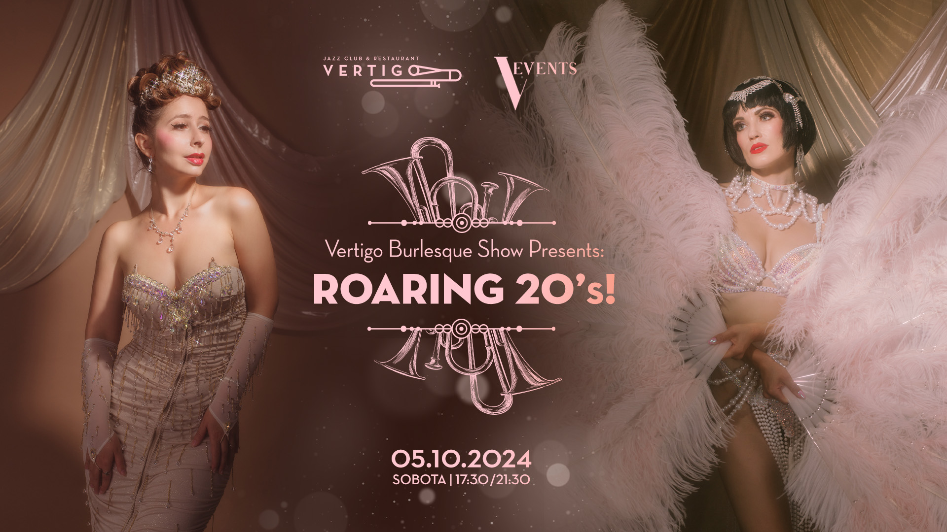 Muzyka na żywo, oszałamiający wokal, taniec, burleska, szampan i blask! Zanurzmy się w nieśmiertelnym klimacie szalonych lat dwudziestych i bawmy się jak sam Wielki Gatsby! Czeka nas widowisko pełne energii: spektakularne choreografie, olśniewające kostiumy i występy gwiazd burleski, które rozgrzeją atmosferę. Zachęcamy do założenia kreacji inspirowanych stylem tej dekady!