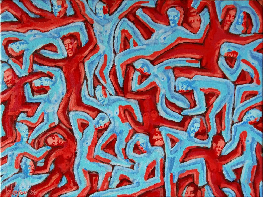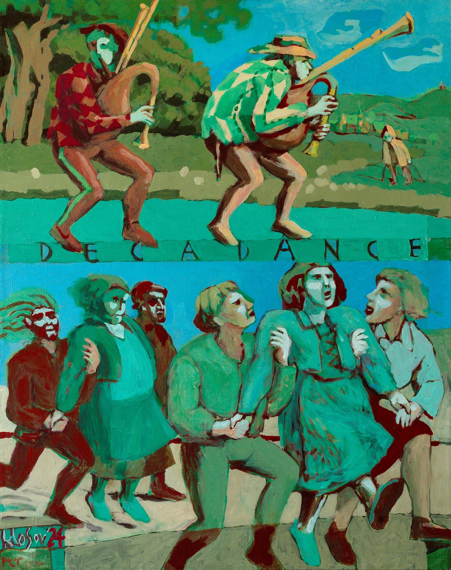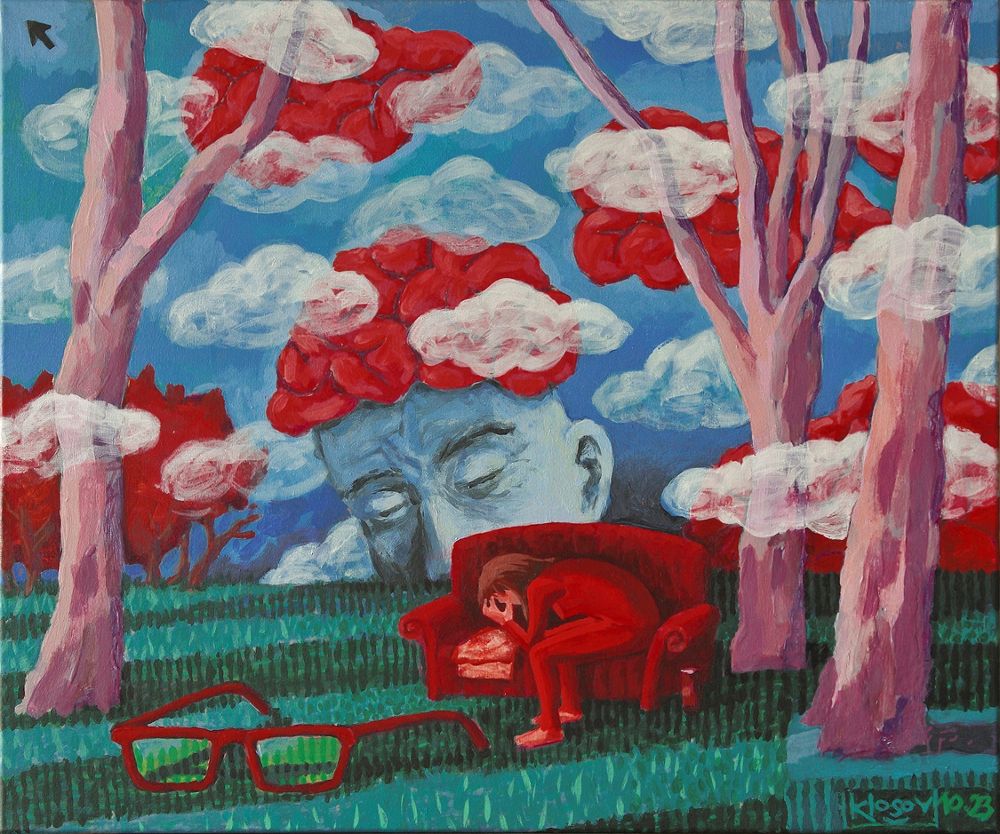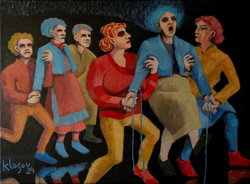 Jego twórczość momentami przywołuje skojarzenia ze „szkołą” Pietera Bruegla Starszego, którego tematy zapożycza i reinterpretuje, nadając im zaskakująco aktualny wydźwięk. Nie jest to jednak jedyne odniesienie – Kłosowicz w świadomie eklektyczny sposób tworzy własną, wielowarstwową przestrzeń wizualną, łącząc różne style i tematy.