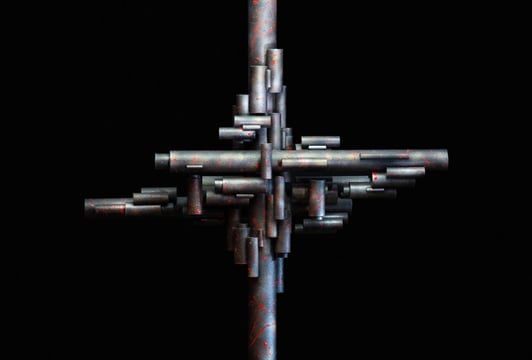 Centralnym punktem instalacji jest makieta, asamblaż „megapolis”, wyobrażonego miasta zbudowanego z materiałów z odzysku. Artysta buduje ekspresyjny komunikat poprzez spiętrzenie i nawarstwienie gotowych elementów - przede wszystkim odpadów, zużytych opakowań, butelek, które poddaje swoistym zabiegom „kosmetycznym”. Wyłania się imponująca makieta miasta mającego w swych genach zarówno dawne twierdze obronne, jak i nowoczesne metropolie o połyskliwych fasadach drapaczy chmur i ciemnych kanionach ulic. Na wystawie zobaczymy również wyrafinowane, abstrakcyjne formy przestrzenne wykonane z papierowych i metalowych rurek, „totemiczne” kompozycje i obiekty z elementów postindustrialnych, militarnych, fragmentów zabawek i czaszek zwierzęcych. Prace pełne symboli i znaczeń.