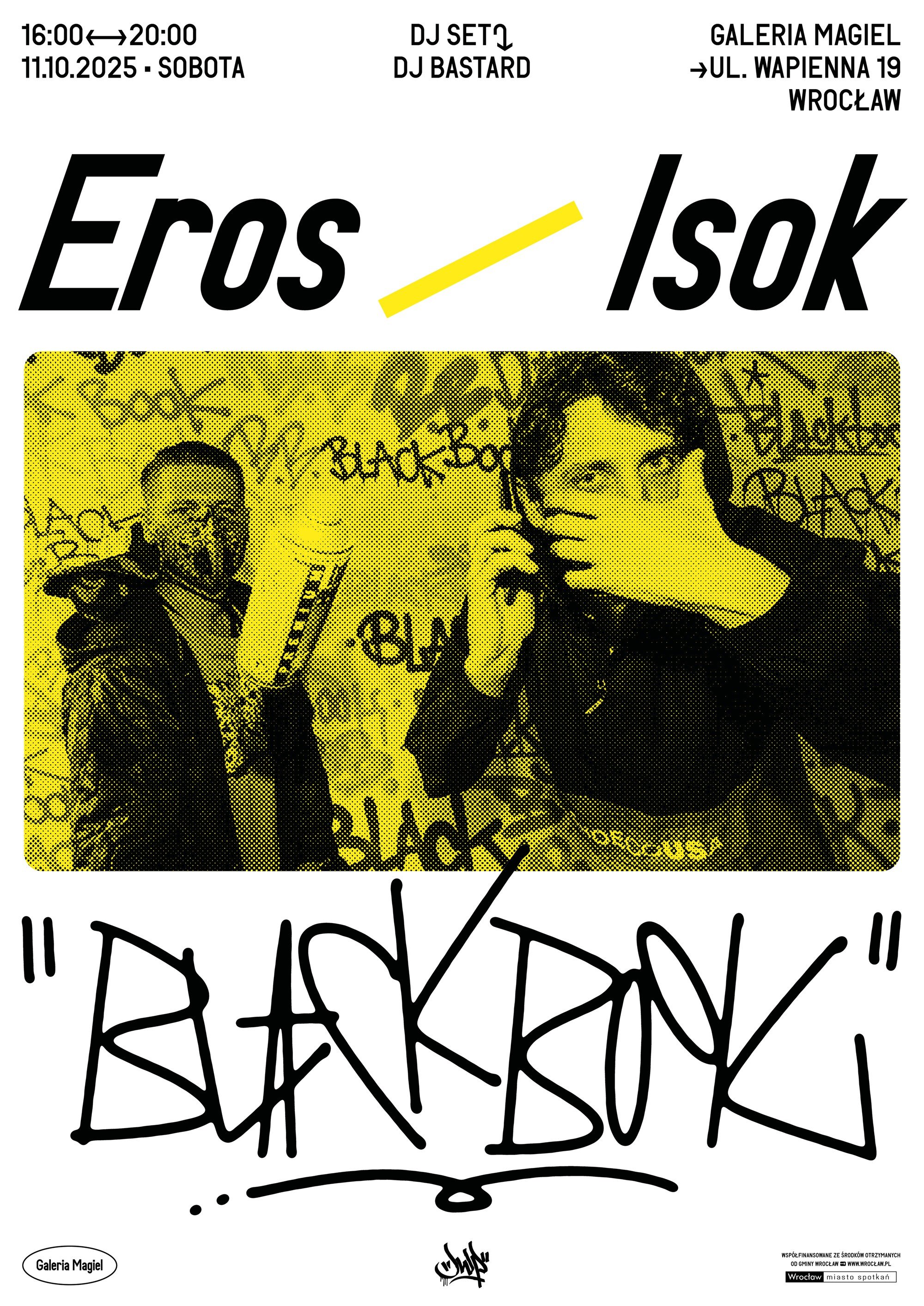 Już w najbliższy weekend 11 października 2025 sobota, przygotowaliśmy dla Was coś naprawdę specjalnego. Rozwijamy czerwony dywan i na maglowe salony wjeżdża duet którego nikomu nie trzeba przedstawiać czyli Eros & Isok z wystawą pt. „Blackbook”. Będzie to pierwsza wspólna wystawa warszawskich artystów. Rezerwujcie terminy w kalendarzu bo to epickie wydarzenie na Wapiennej nastąpi już 11 października 2025.