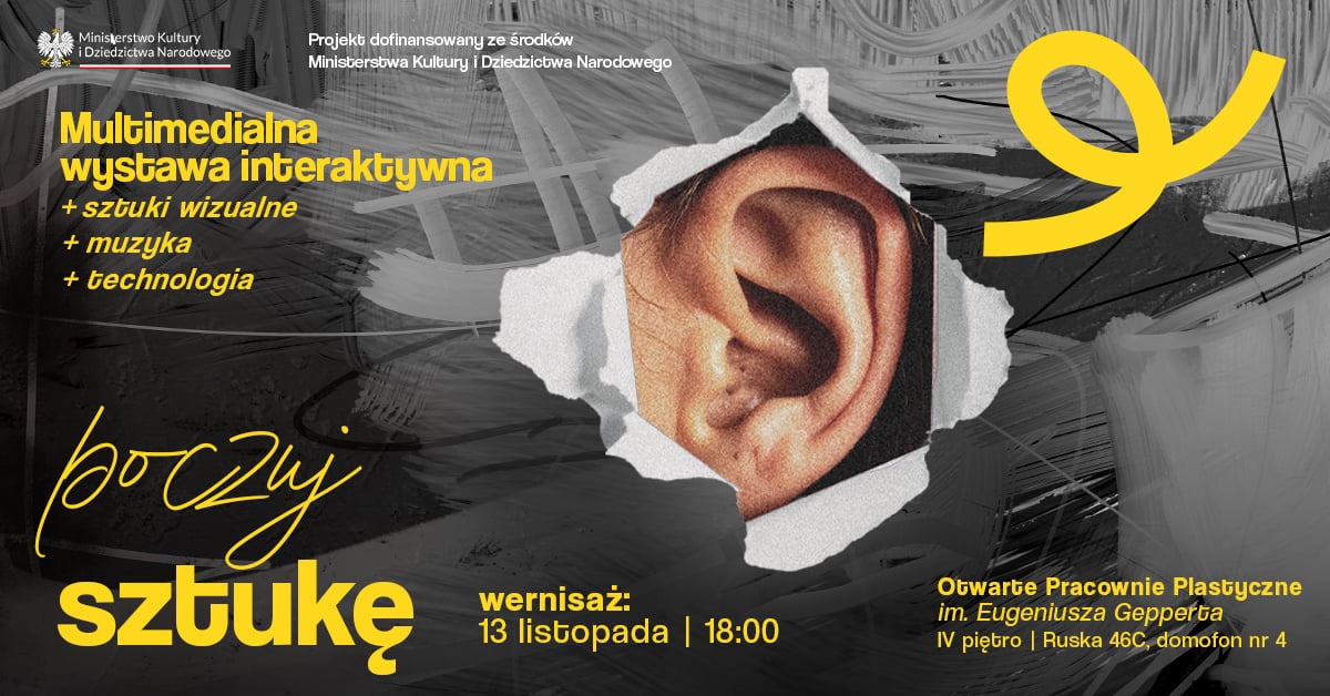 POCZUJ SZTUKĘ to wystawa, w której sztuka mówi do Ciebie - dosłownie. Dziesięć wyjątkowych prac uczestników Otwartych Pracowni Plastycznych im. Eugeniusza Gepperta we Wrocławiu tworzy przestrzeń pełną dźwięku, obrazu i dotyku. Każde dzieło ma swój głos - własną kompozycję muzyczną, którą usłyszysz, gdy założysz słuchawki i zbliżysz się do eksponatu.