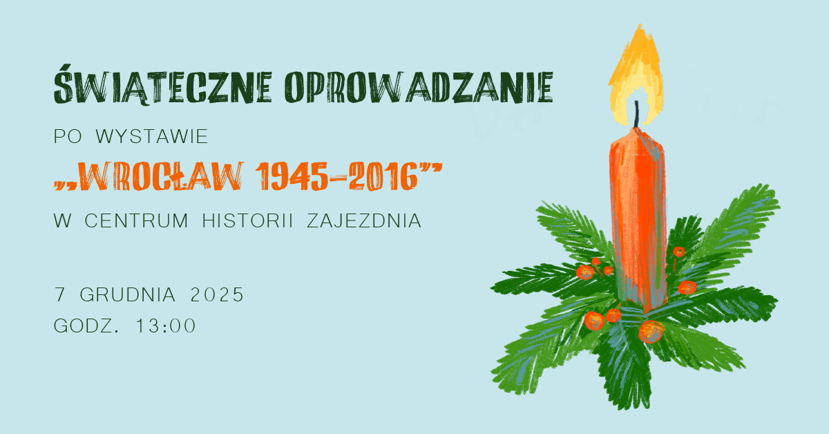 Zapraszamy na wyjątkowe, świąteczne oprowadzanie po wystawie „Wrocław 1945-2016” w Centrum Historii Zajezdnia! Już w najbliższą niedzielę, 7 grudnia o 13.00, wraz z przewodnikiem wyruszycie w podróż po powojennym Wrocławiu, zabarwioną świątecznymi akcentami. To doskonała okazja, by na chwilę zatrzymać się w przedświątecznym biegu i pozwolić sobie na odpoczynek, a przy okazji odkryć ciekawostki historyczne w wyjątkowej, zimowej atmosferze.