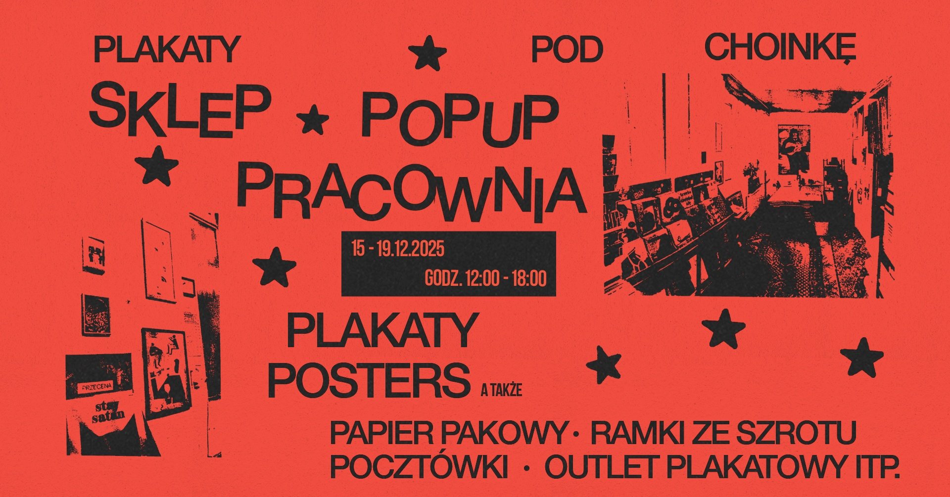 Zapraszamy do pracowni plakatu, gdzie w dniach 15–19 grudnia możesz zdobyć autorskie plakaty z pierwszej ręki – idealne na prezent dla bliskiej osoby lub dla siebie.