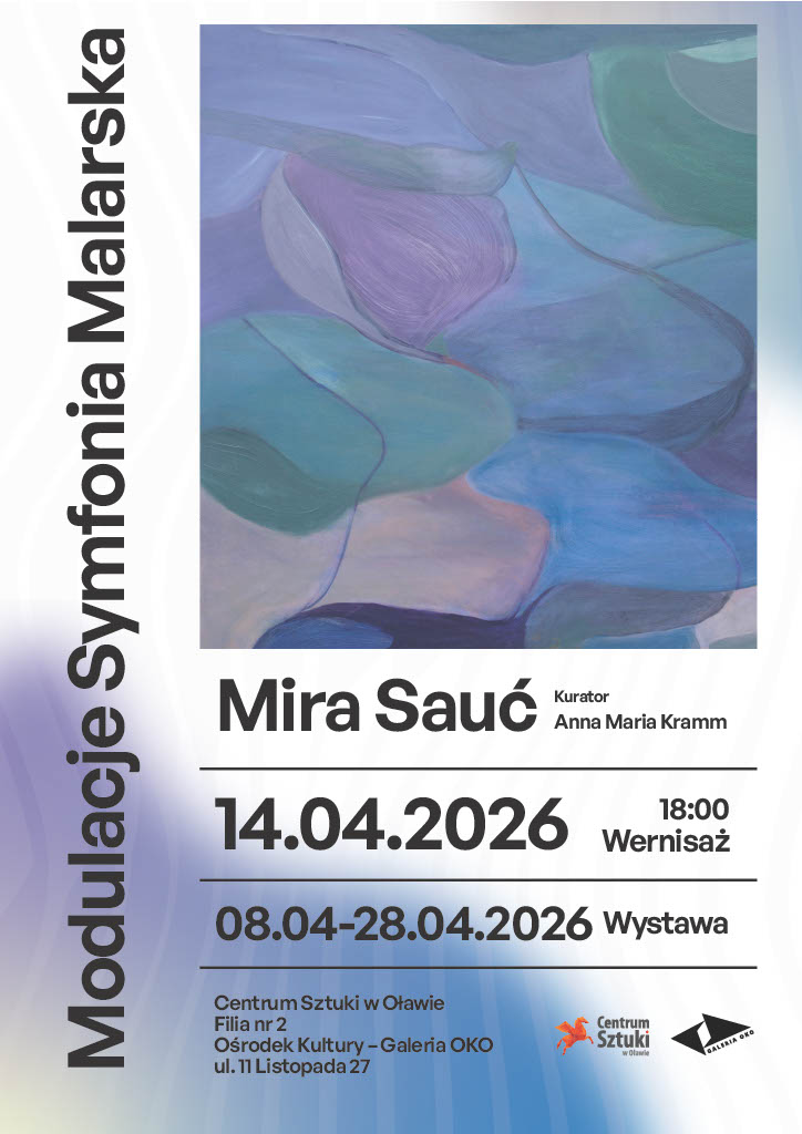 Zapraszamy na wernisaż wystawy malarstwa Miry Sauć pt. „Modulacje. Symfonia Malarska”, który odbędzie się w Galerii OKO w Ośrodku Kultury, filii nr 2 Centrum Sztuki w Oławie, we wtorek 14 kwietnia 2026 roku o godzinie 18:00.