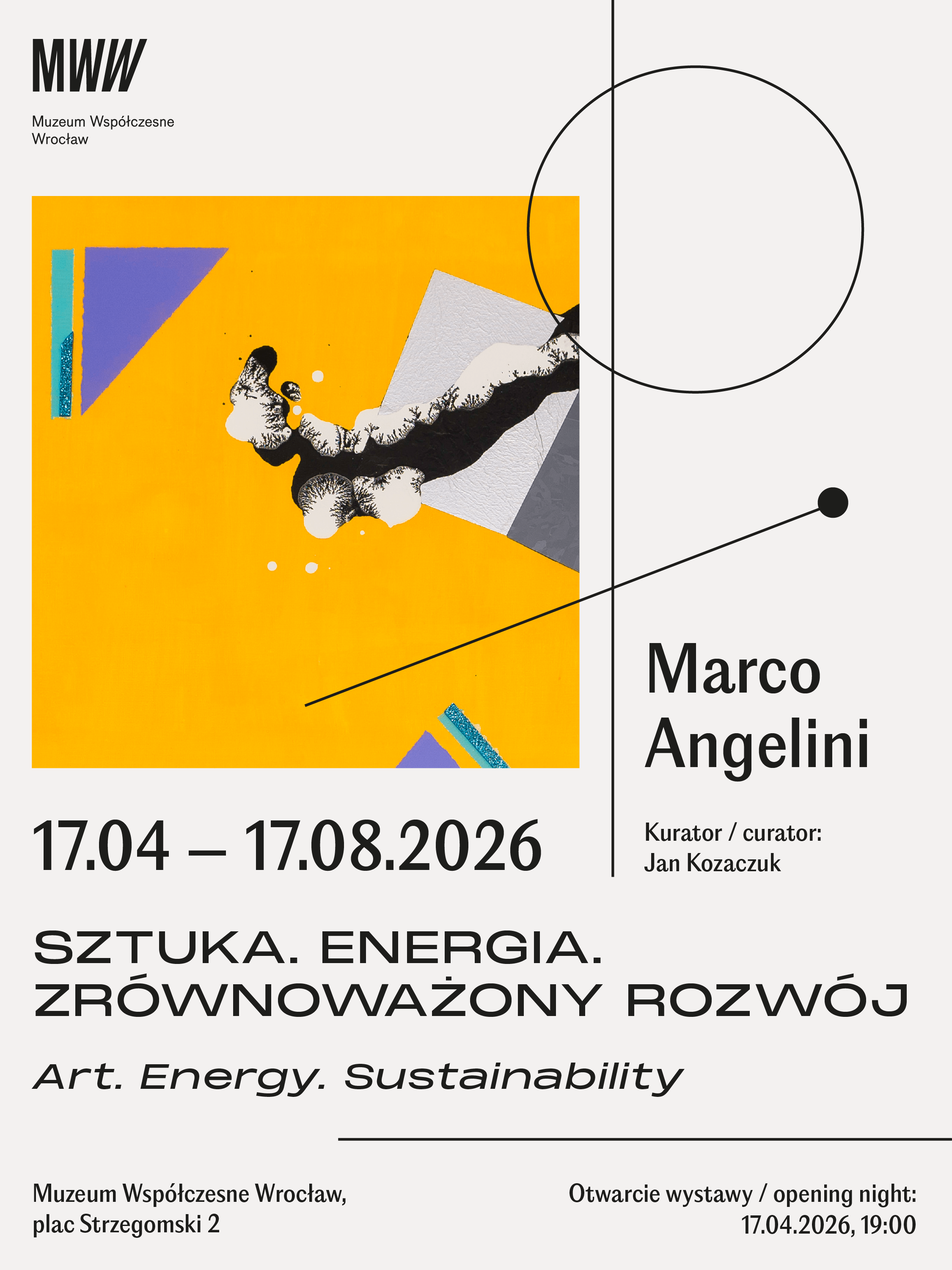 Wystawa „Sztuka. Energia. Zrównoważony rozwój” Marco Angeliniego jest refleksją nad relacją człowieka, technologii i natury w świecie dynamicznych przemian cywilizacyjnych. Punktem odniesienia staje się koncepcja Homo Faber, opisana przez Hannah Arendt w Kondycji ludzkiej (1958) – człowieka, który poprzez pracę, wynalazczość i technologię kształtuje rzeczywistość, mierząc się jednocześnie z konsekwencjami własnych działań.