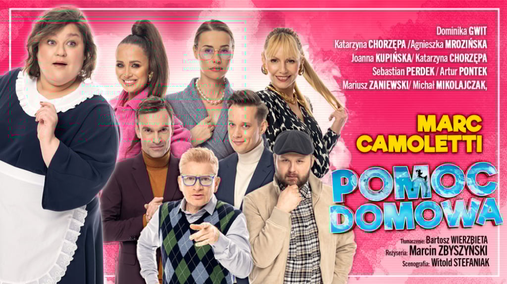 „Pomoc domowa” to jedna z najlepszych fars mistrza gatunku Marc’a Camolettiego, przetłumaczona na język polski przez Bartosza Wierzbiętę, znanego m.in. z doskonałego tłumaczenia filmu „Shrek”.