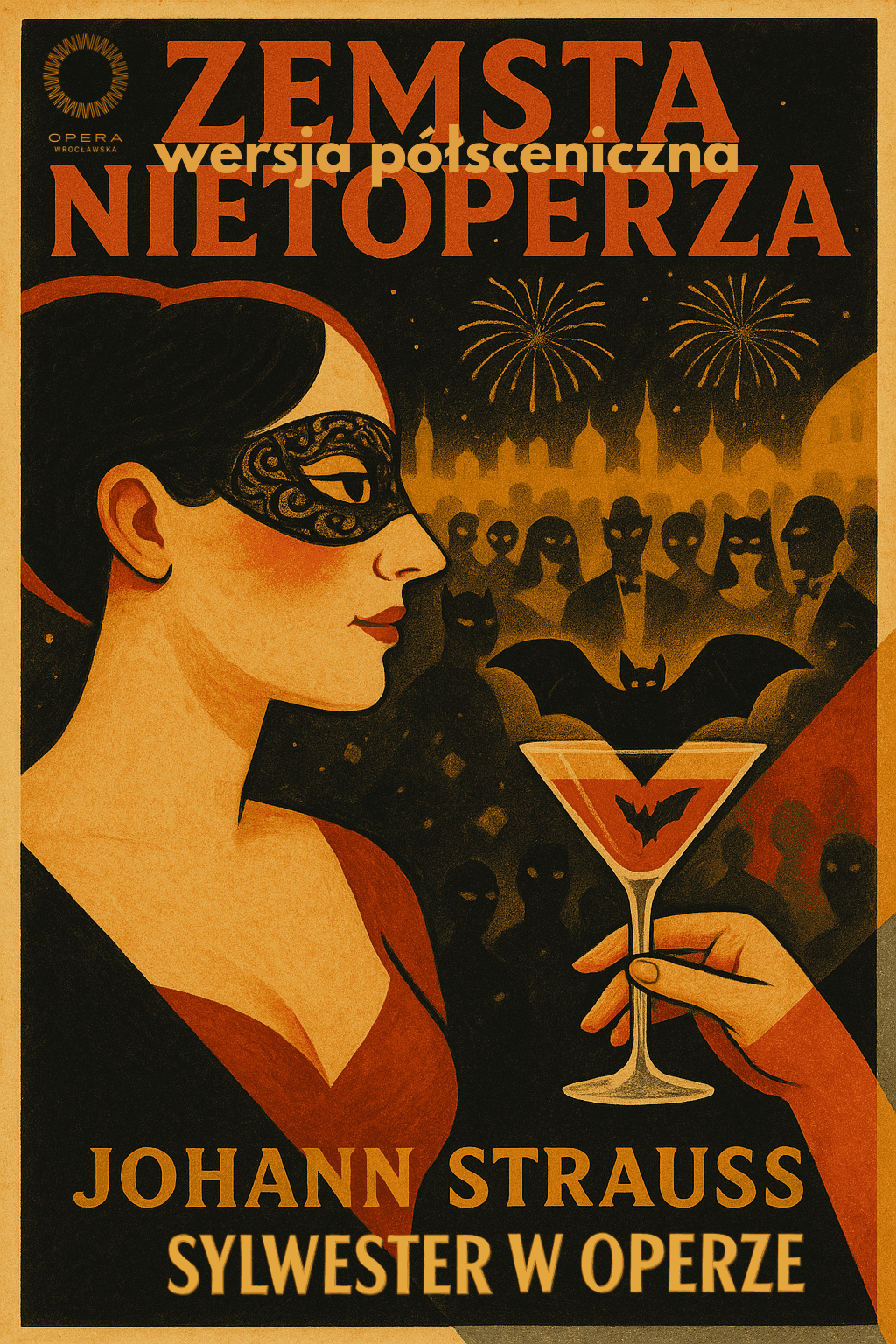 Na przełomie starego i nowego roku Opera Wrocławska zaprasza na wyjątkową półsceniczną wersję „Zemsty nietoperza” Johanna Straussa. Ta przezabawna, najsłynniejsza operetka zapewnia zarówno humor, jak i niezapomniane wrażenia muzyczne.