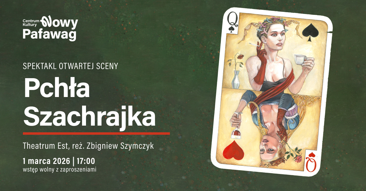 Zapraszamy w poniedziałek, 1 marca 2026, do Centrum Kultury Nowy Pafawag na spektakl „Pchła Szachrajka” w wykonaniu Theatrum Est.