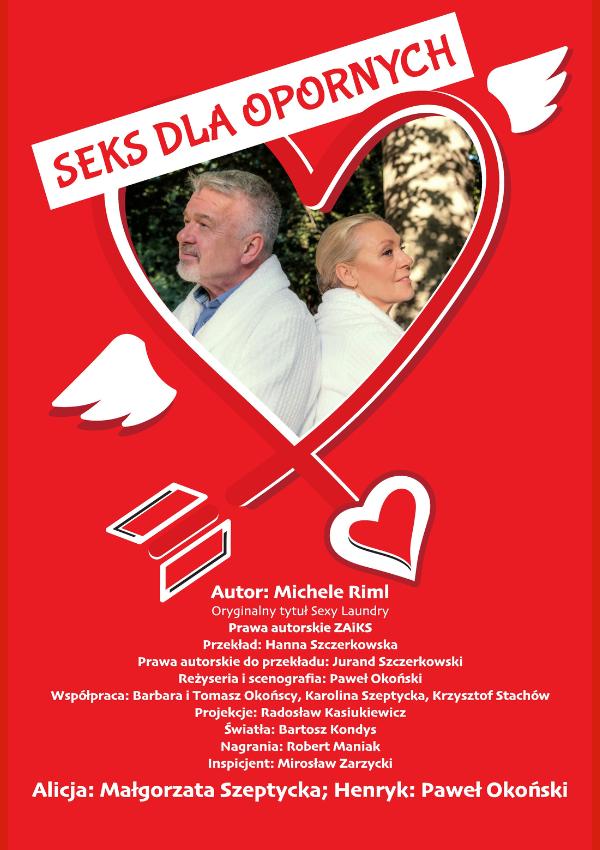 „Seks dla opornych” to przedstawienie opowiadające o parze dojrzałych ludzi, którzy na pewnym etapie swojego wspólnego życia poczuli nieodpartą potrzebę jego odmiany. Ucieczki od powszedniości i sankcjonowanej przez utarte schematy rutyny codziennego, zwykłego życia małżeństwa w średnim wieku. Wyjeżdżają do eleganckiego hotelu, odrywają się od obowiązków, pracy, rodziny z nadzieją, że w ciągu kilku dni wydarzy się coś, co wprowadzi w ich związek ożywcze tchnienie, odświeży ich relacje i lekko spatynowane przez czas uczucie. „Seks dla opornych” to komedia, w której sytuacje wyjęte z klasycznej farsy towarzyszą scenom romantycznym i wzruszającym. Dokładnie tak jak w naszym życiu, które przecież czasem bywa niezwykłe i cudowne po to by za chwilę stać się nudne, przewidywalne, ale też i śmieszne w sposób niezamierzony i zaskakujący.