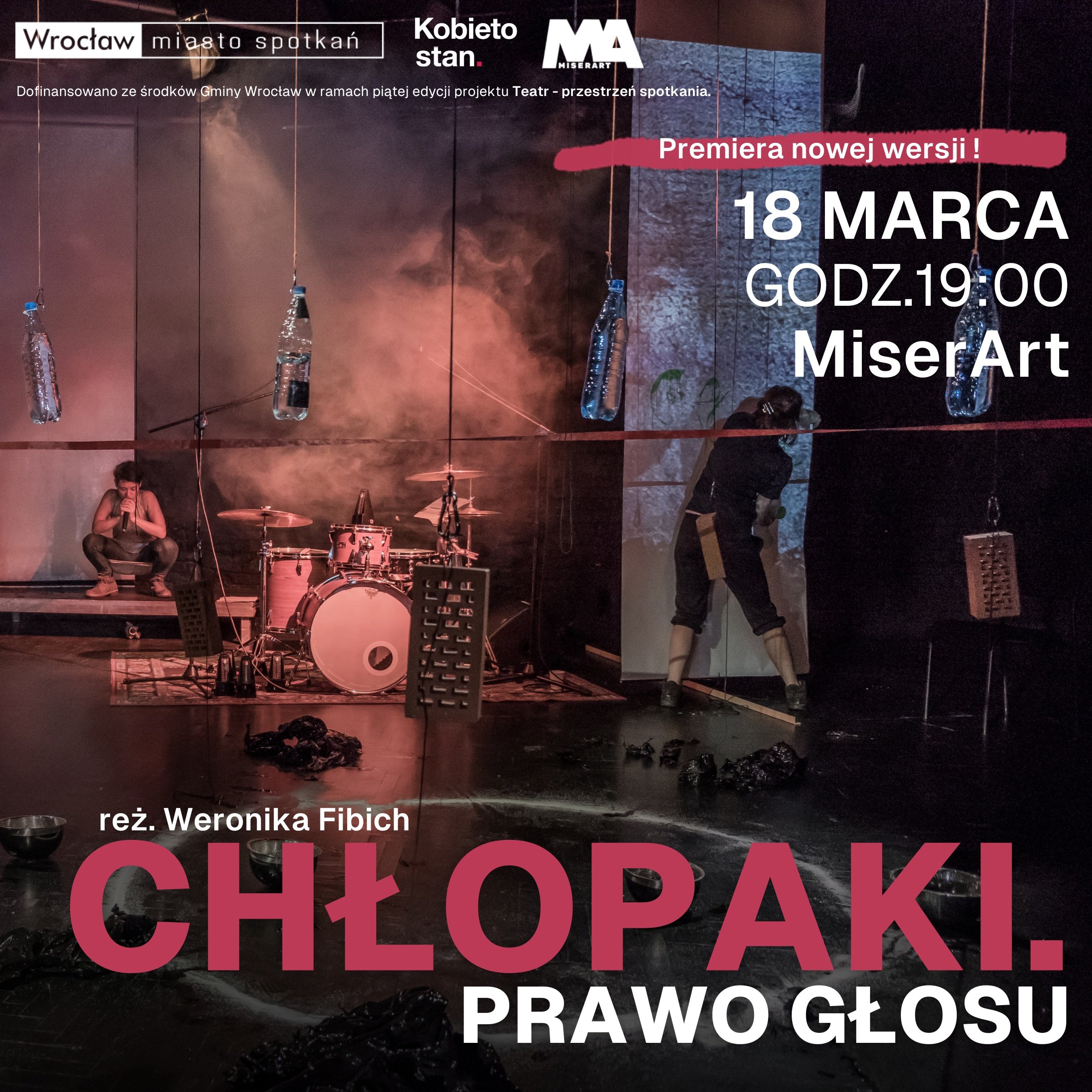 Kobietostan zaprasza na spektakl „Chłopaki. Prawo głosu”, który 18 marca 2026 zostanie zaprezentowany w odświeżonej wersji we wrocławskim MiserArcie.