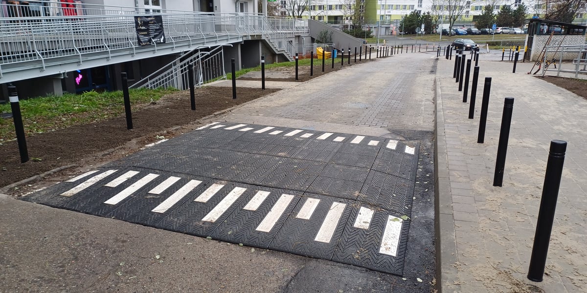 - usunięcie jednego przęsła balustrady przy przejściu dla pieszych.