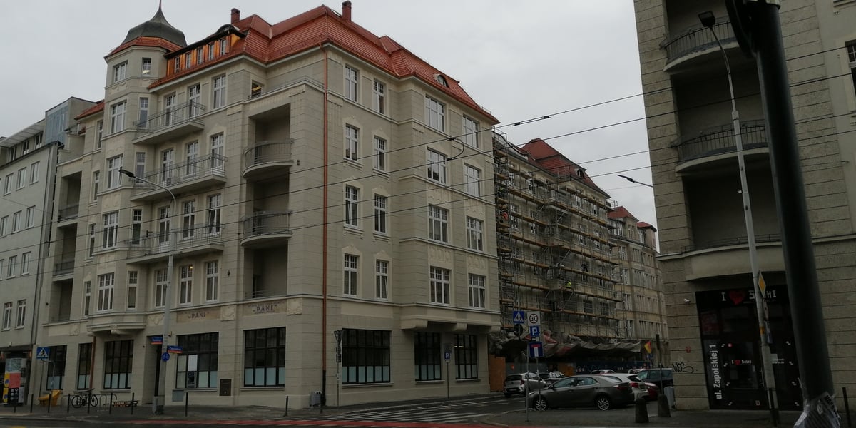 Zakres modernizacji i remontu elewacji obiektu od strony ul. Piłsudskiego oraz częściowo od strony ul. G. Zapolskiej obejmował: wymianę i wzmocnienie uszkodzonych tynków zewnętrznych, wzmocnienie uszkodzonej konstrukcji ceglanych ścian, uzupełnienie, cyzelowania i odtworzenie ozdobnego detalu dekoracyjnego wraz z ich strukturalnym wzmocnieniem, wykonanie tynków zewnętrznych mineralnych i malowanie ich farbami silikatowymi, remontu balkonów wraz z ich zabezpieczeniem siatkami przed ptakami, konserwacji balustrad wraz z zabezpieczeniem antykorozyjnym, wymianę obróbek blacharskich, parapetów oraz rur spustowych wraz z żeliwnymi czyszczakami, konserwację i renowację zewnętrznej stolarki drzwiowej, konserwację odsłoniętych zabytkowych napisów, wymianę instalacji odgromowej.