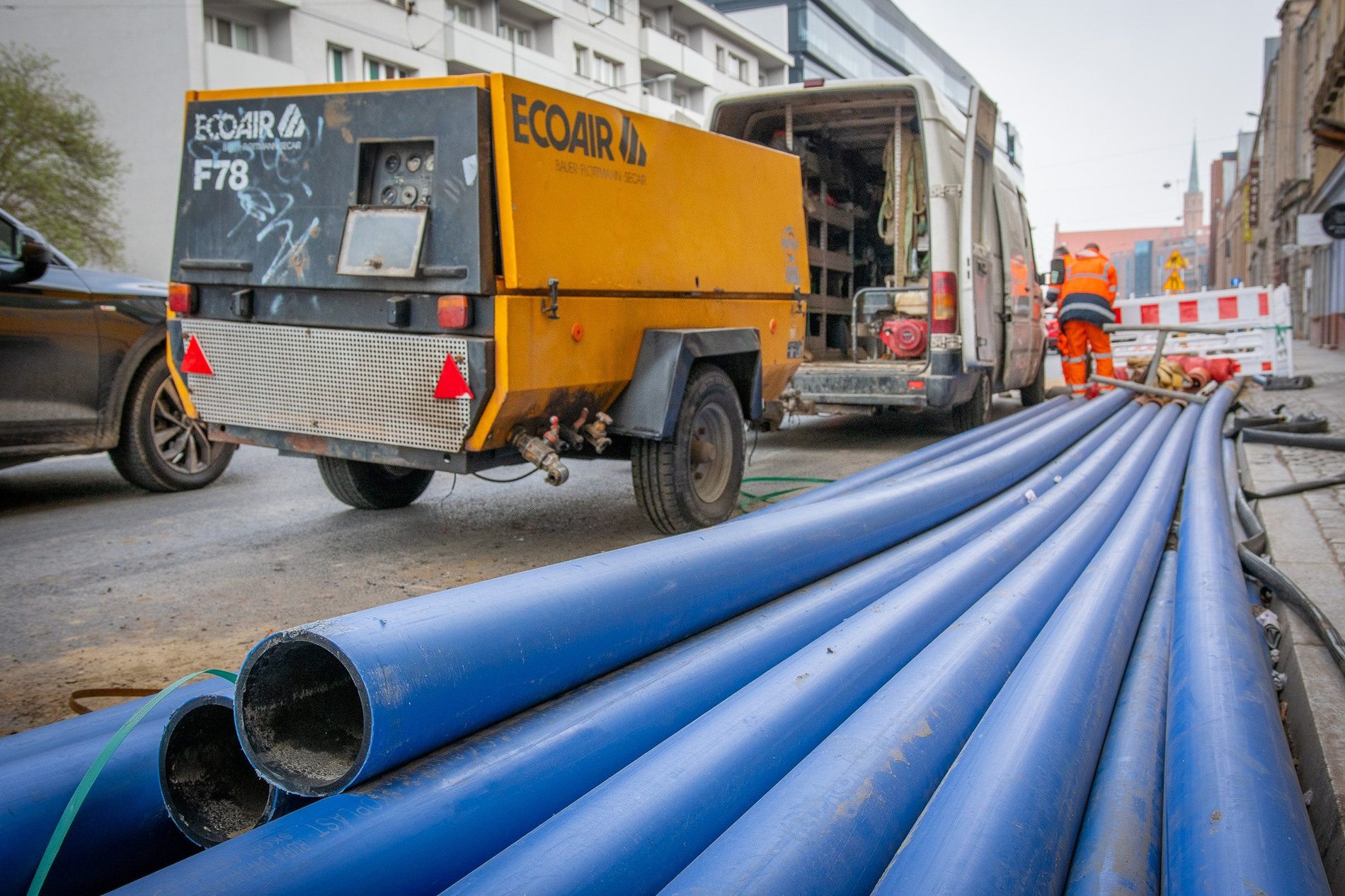 Teraz trwa wymiana 220 m żeliwnego wodociągu o średnicy 150 mm wzdłuż wschodniej części ul. Skargi. Prace te prowadzone są metodą bezwykopową.