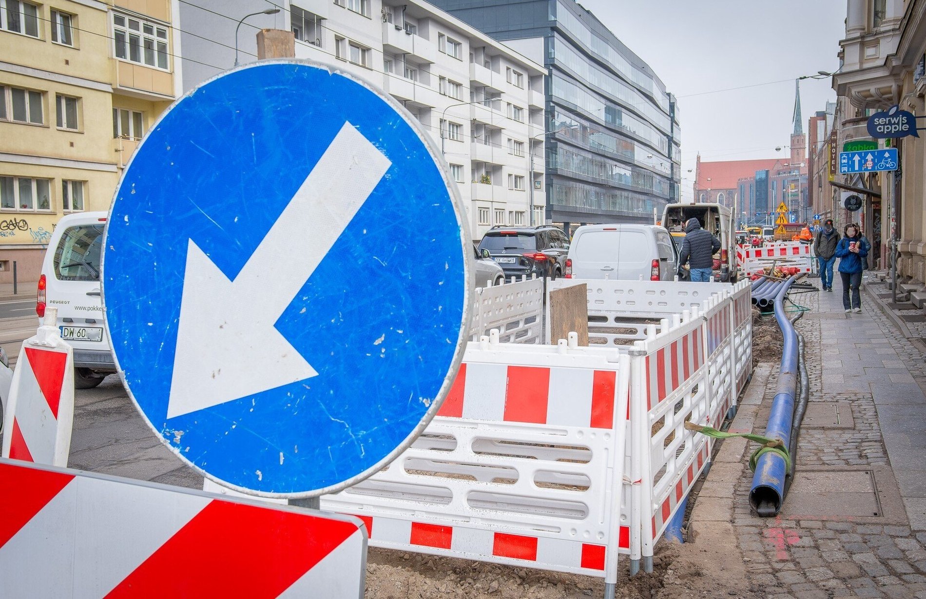 Jednak aby można było dokonać tej wymiany, konieczne będzie zrobienie trzech wykopów. W związku tym pojawią utrudnienia dla kierowców jadących ul. Ślężną od południa: