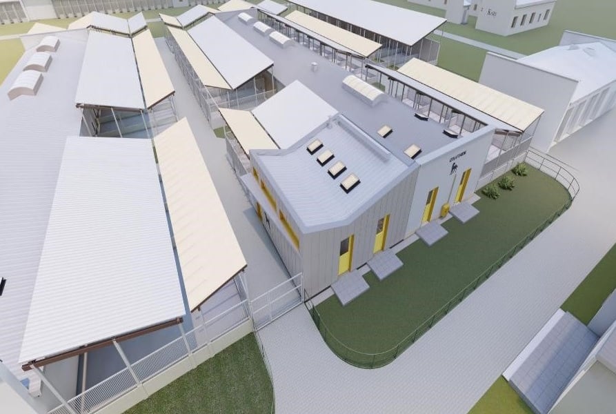 - utworzone zostaną kojce dla psów – 7 szt. o pow. od 4,5 m2 do 6,5 m2 (dla małych i średnich psów),
