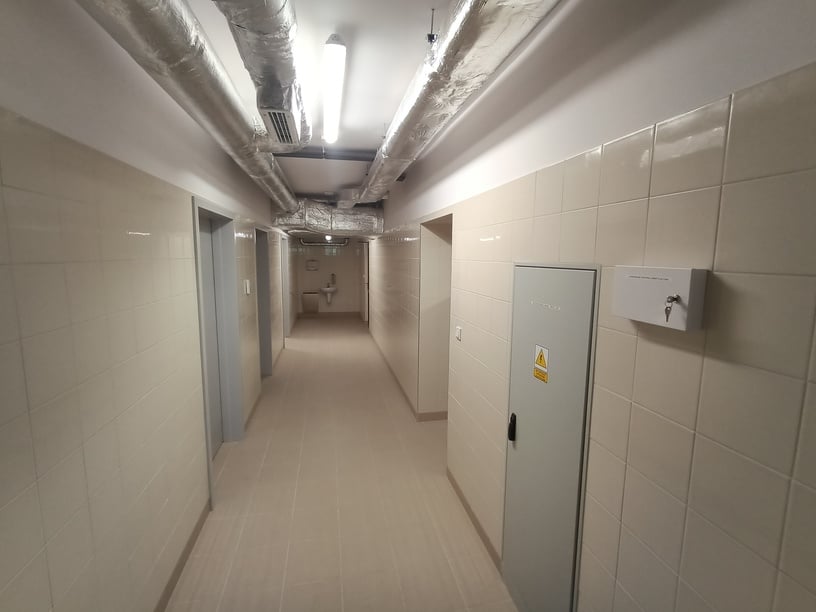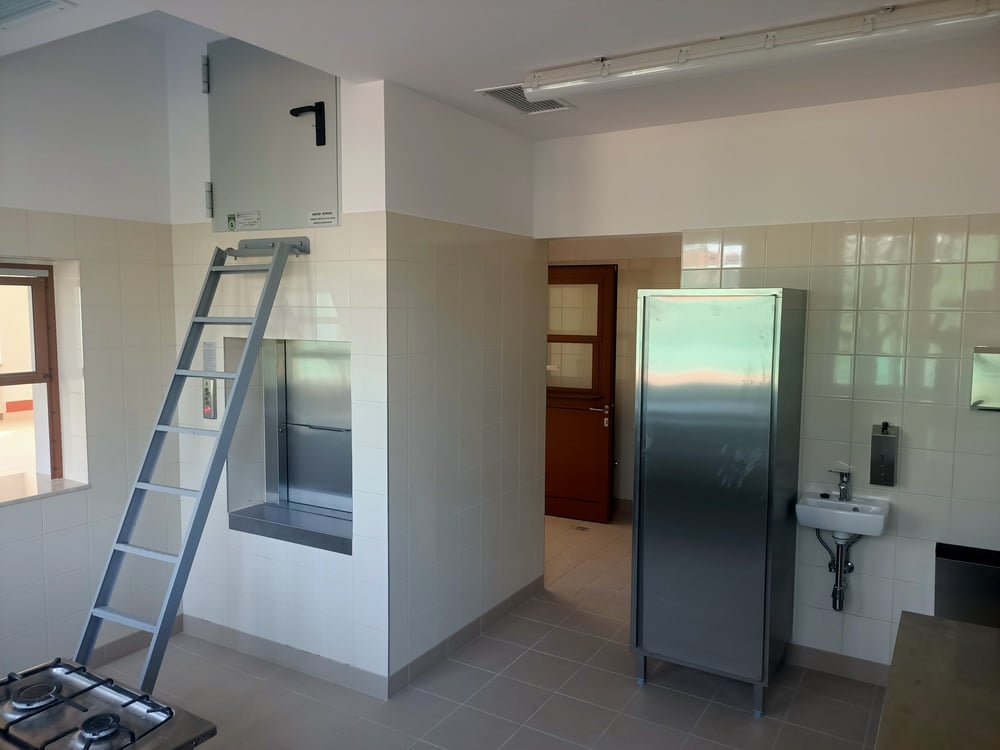 - kompleksowa przebudowa i remont pomieszczeń bloku żywienia na kondygnacji piwnic i parteru wraz ze wszystkimi instalacjami sanitarnymi i elektrycznymi oraz wyposażeniem (meble i urządzenia gastronomiczne, sprzęty), zakup, dostawa i montaż dźwigu towarowego,