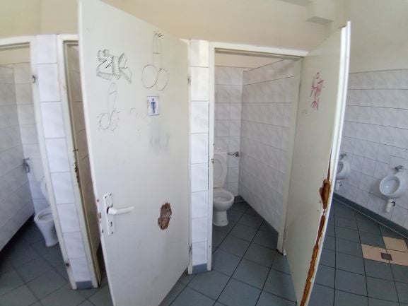 5) roboty wykończeniowe, w tym: wykonanie uzupełnień tynków wewnętrznych, roboty malarskie, wykonanie okładzin ściennych, okładzin posadzkowych, kabin systemowych w sanitariatach, obudów instalacji z płyt g-k, zawieszenie skrzydeł drzwiowych, zakup, dostawa i montaż wyposażenia sanitariatów, w tym: biały montaż, lustra, dozowniki na mydło w płynie, kosze na zużyte ręczniki, uchwyty na papier toaletowy, podajniki ręczników papierowych, szczotki wc,