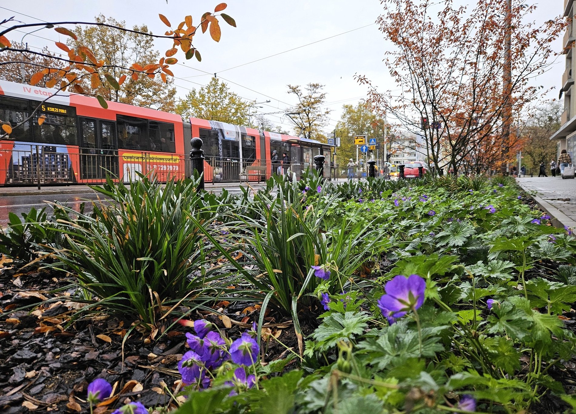 W rejonie skrzyżowania z Podwalem, część chodnika poświęcono na stworzenie pasa na rośliny. Posadzono tam w ubiegłym roku sześć krzewów świdośliwy oraz liczne kwiaty i mniejsze rośliny (koszt - 107,8 tys. złotych).