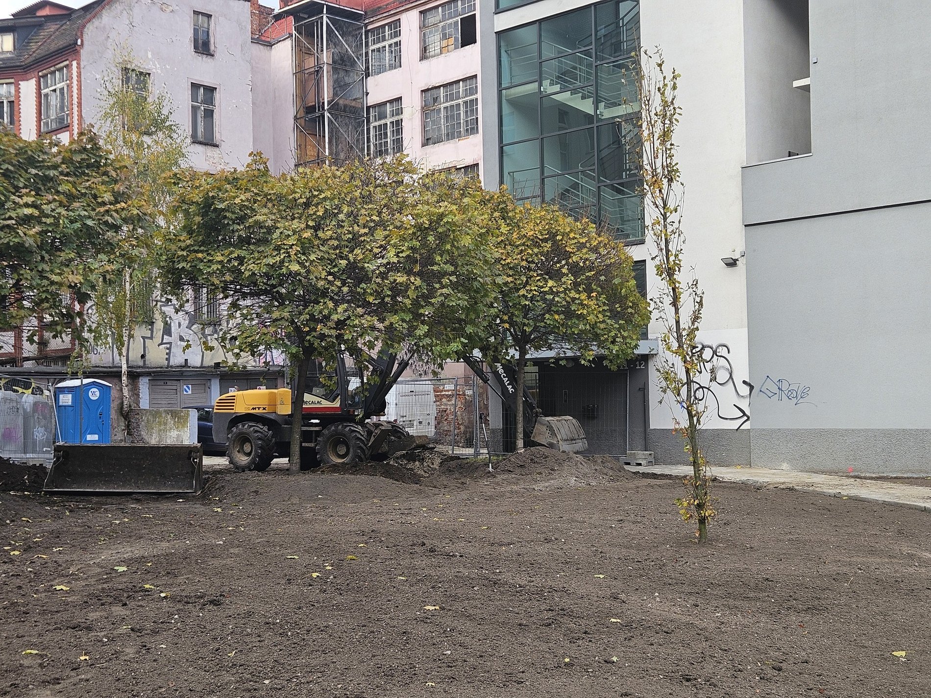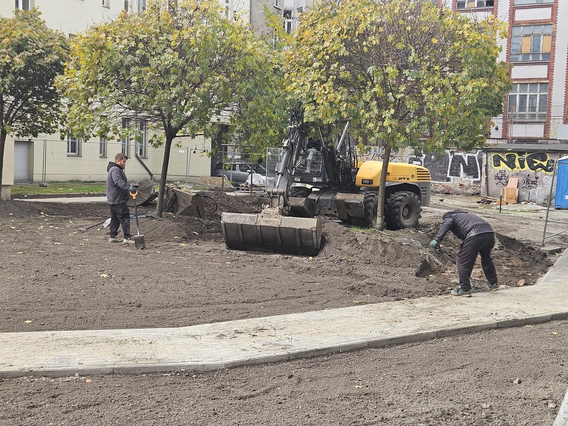 Wykonawca właśnie prowadzi prace, których efektem będzie ładniejszy skwerek między budynkami. Inwestycja prowadzona przez Zarząd Zasobu Komunalnego jest w całości finansowana z Funduszu Osiedlowego Rady Osiedla Przedmieście Świdnickie.