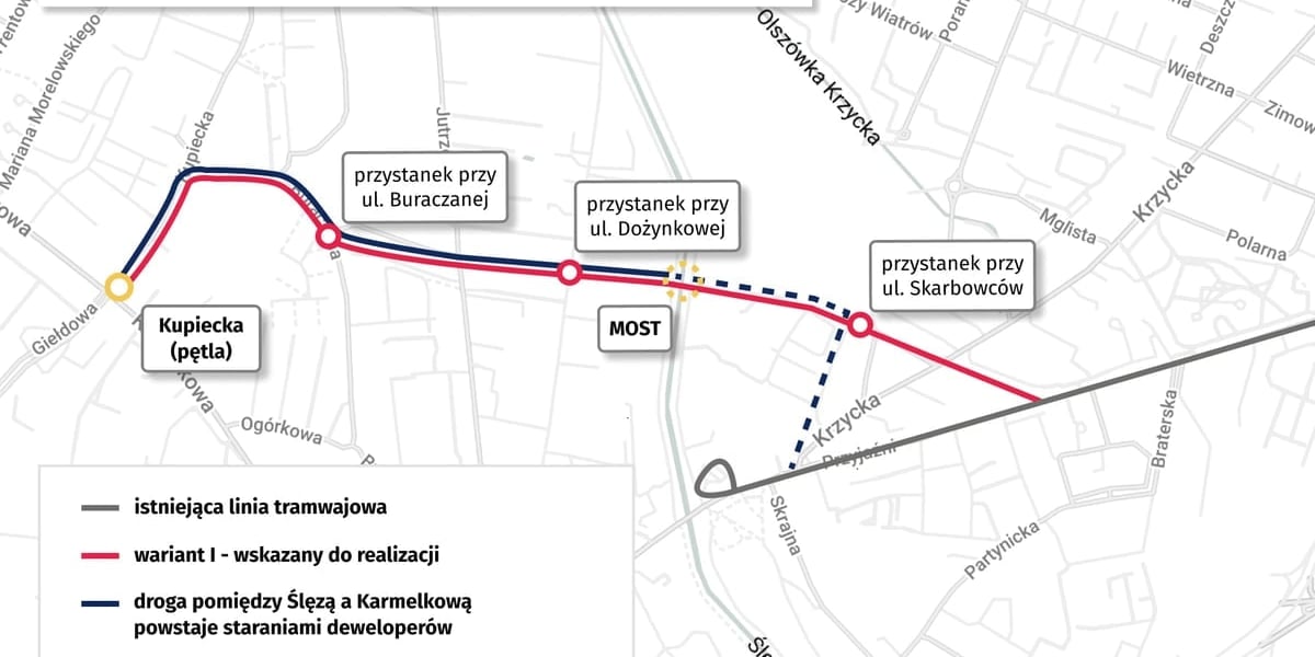 Powstanie trasa o długości 1,8 km i będzie posiadać cztery pary przystanków. Poza nowym odcinkiem od pętli Klecina, zostanie wybudowany drugi tor na ul. Przyjaźni.