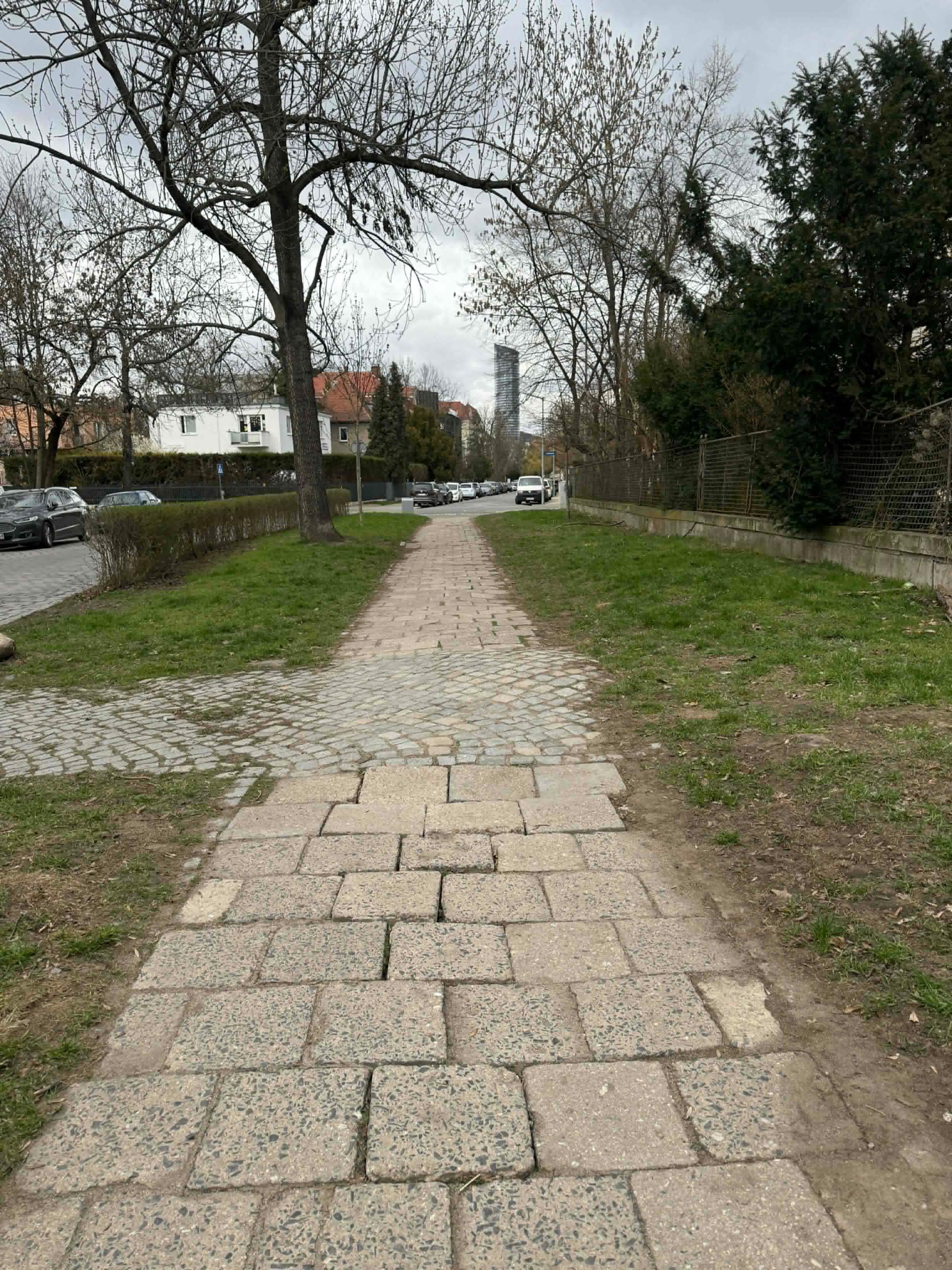 - nowy, wygodny chodnik z kostki betonowej (szer. 2,20 m, lokalnie 1,80 m – z poszanowaniem istniejących drzew),