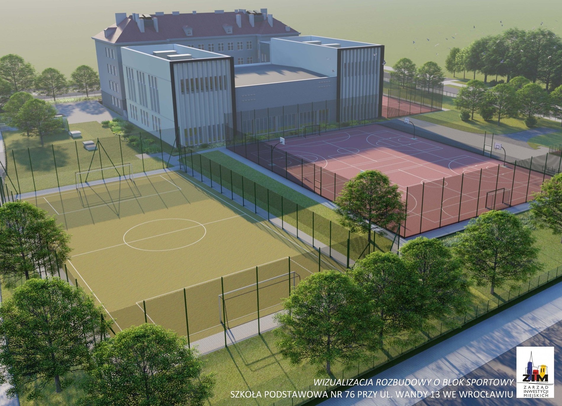 Szkoła Podstawowa nr 76 przy ul. Wandy zostanie rozbudowana o nowoczesny blok sportowy, który znacząco poprawi warunki do nauki i aktywności fizycznej. W planach jest budowa pełnowymiarowego boiska do piłki ręcznej, sali do gimnastyki oraz nowych przestrzeni do zajęć dydaktycznych.