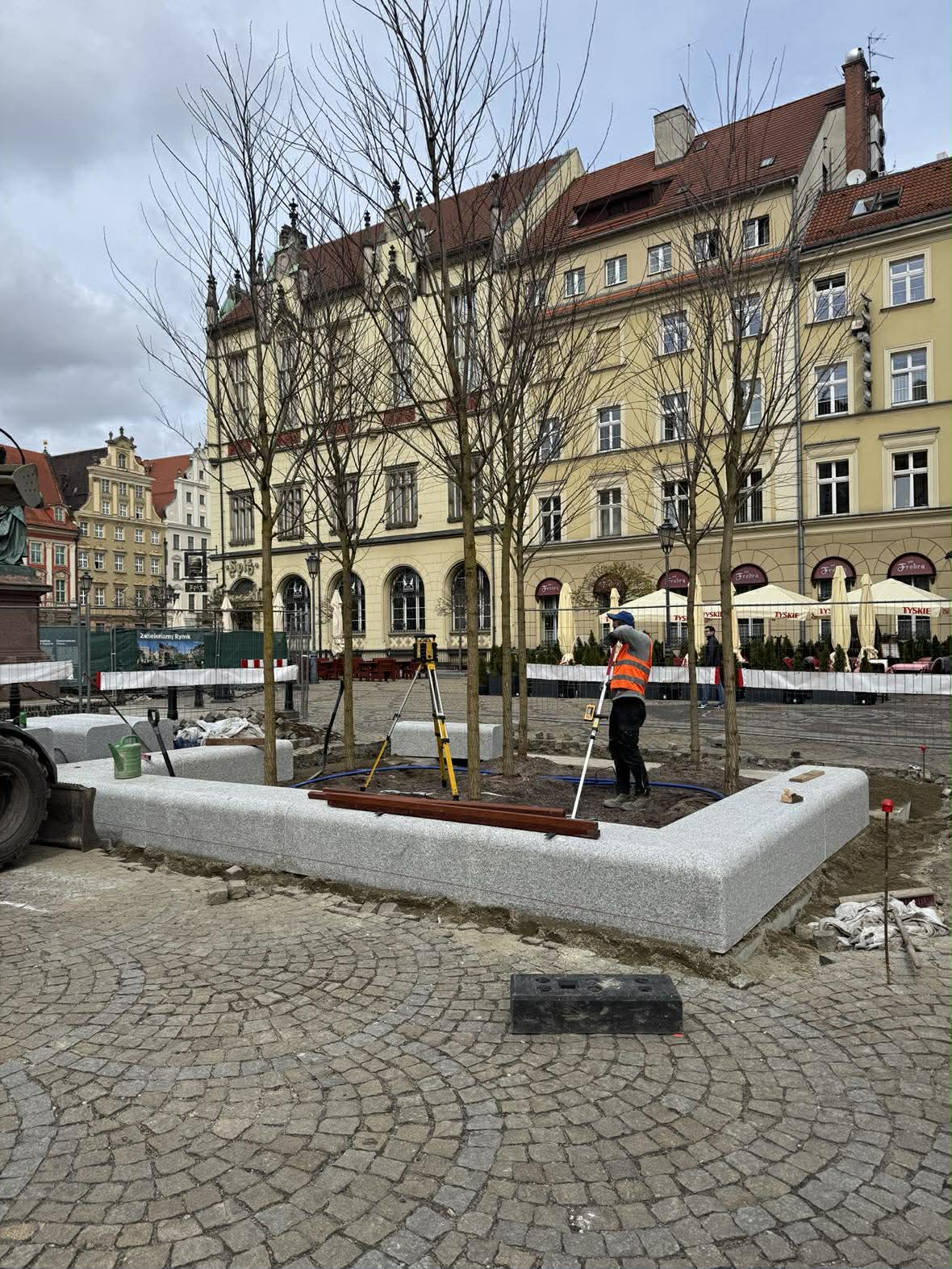 Trwają prace związane z zazielenianiem Rynku, które obejmują nie tylko nowe nasadzenia, ale również elementy poprawiające funkcjonalność tej przestrzeni.