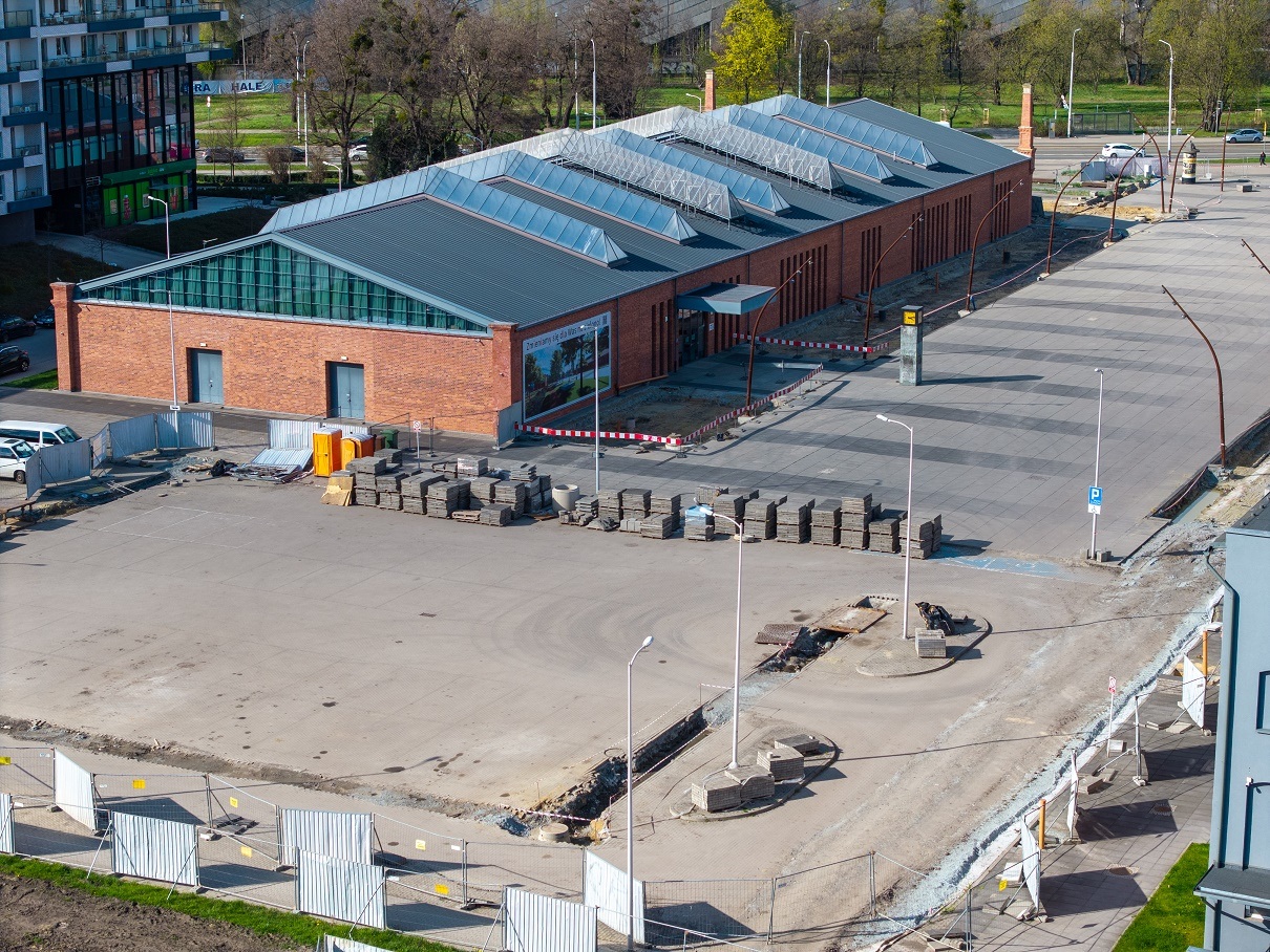 Zabetonowany teren przy Centrum Historii Zajezdnia ma stać się bardziej zielony. Niestety wykonawca zszedł z placu budowy i miasto będzie musiało rozpisać nowy przetarg.