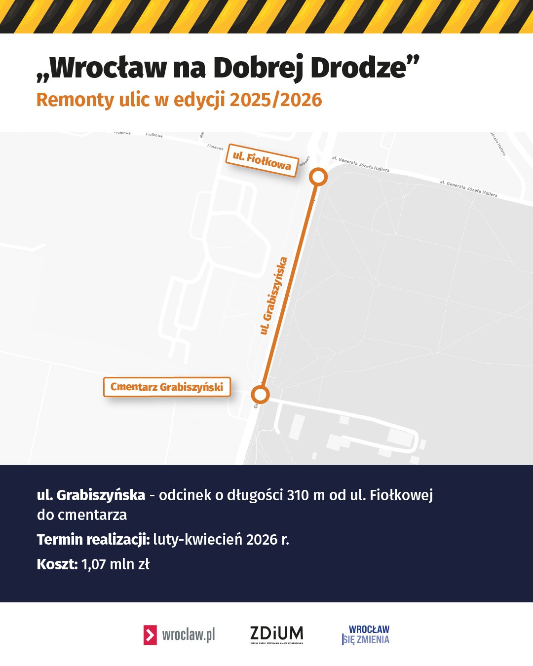 - Grabiszyńska – między Fiołkową a cmentarzem na Grabiszynie,