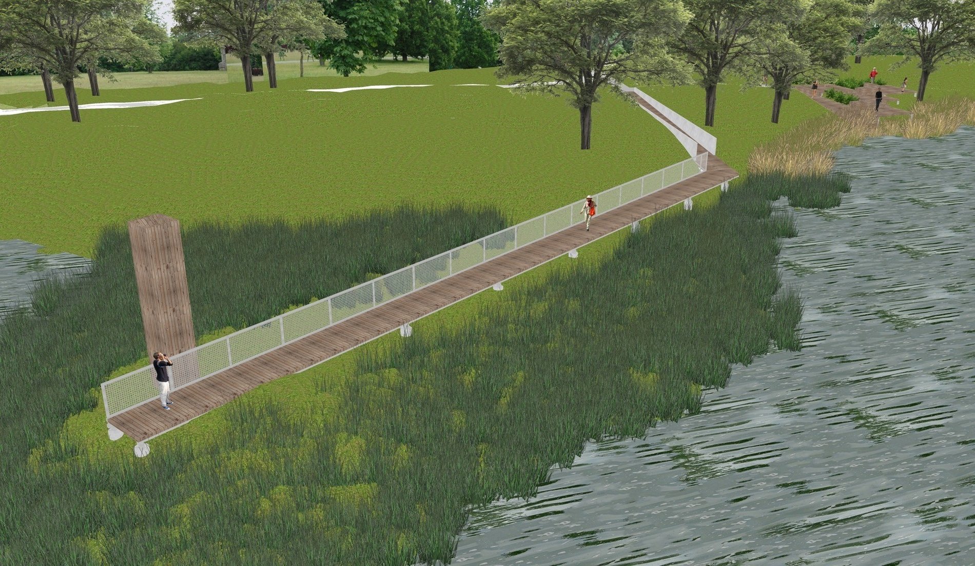 - pomostów drewnianych ulokowanych na brzegach stawu (m.in. rekreacyjnych, obserwacyjnych, dla wędkarzy);