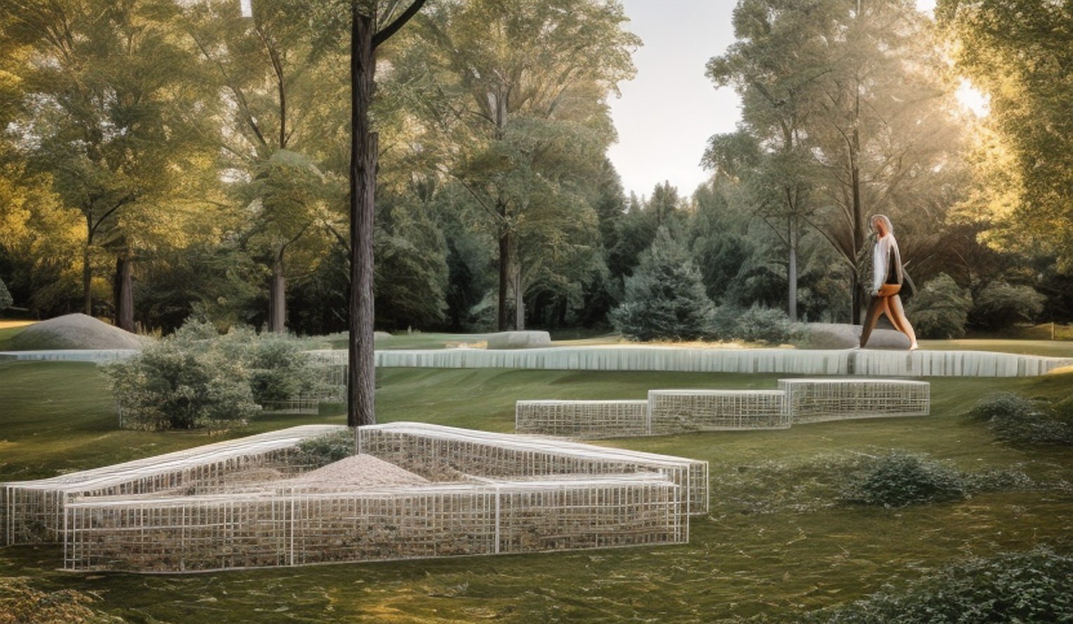- rzeźb gabionowych (czyli wykonanych ze stalowej siatki i wypełnionych twardymi materiałami, np. kamieniem, żwirem) z wykorzystaniem istniejących materiałów;