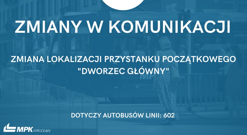 4 kwietnia - zmiana lokalizacji przystanku "Dworzec Główny" dla autobusów linii 602
