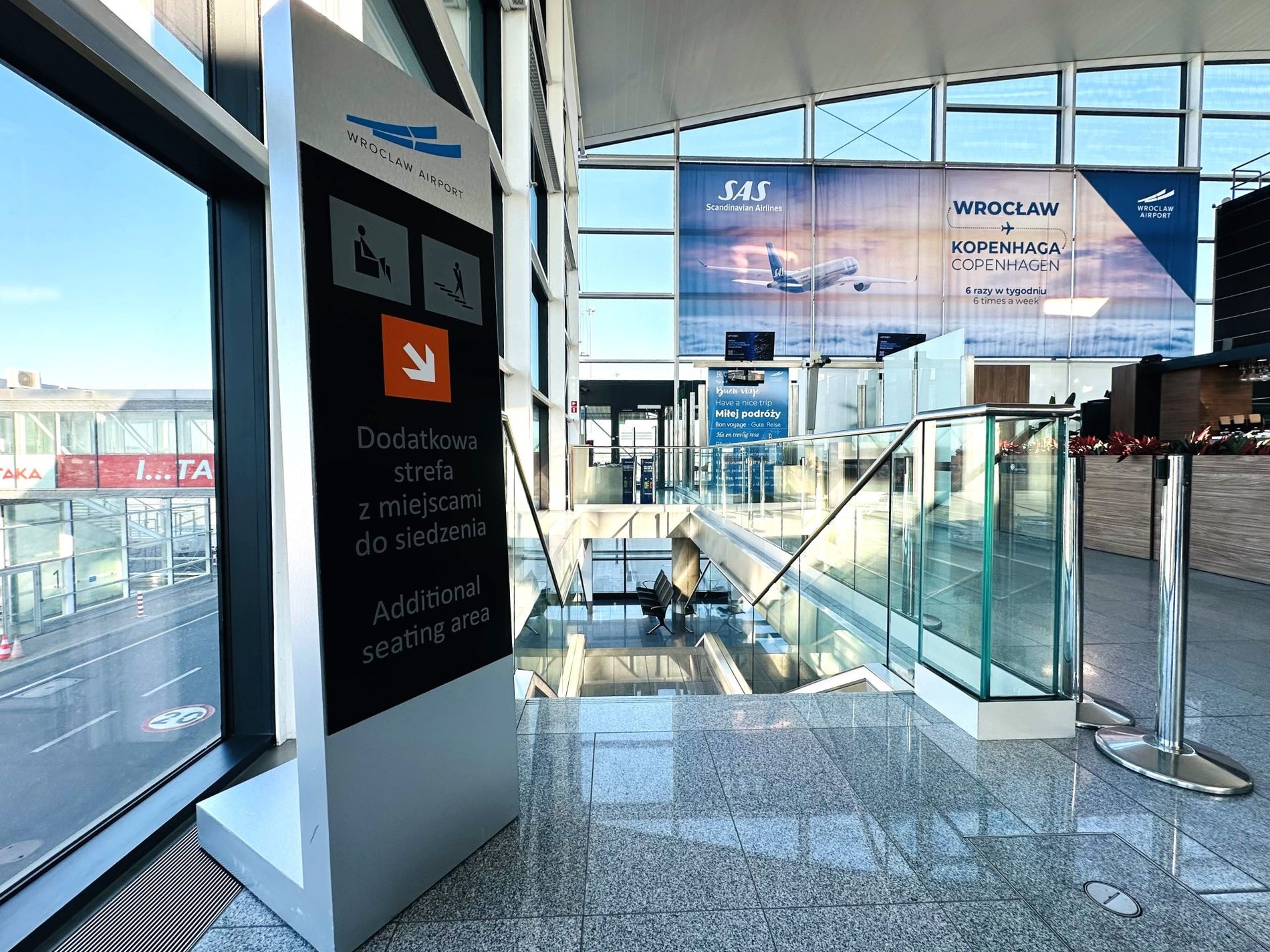 Port Lotniczy Wrocław oddał do dyspozycji pasażerów nową, komfortową przestrzeń w hali odlotów. Zlokalizowana na półpiętrze w pobliżu gate’ów nr 1 i 2, oferuje 288 miejsc siedzących.