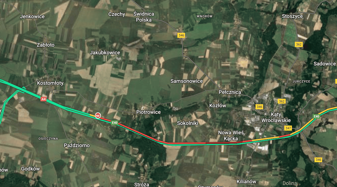 Do kolizji doszło na kilometrze 129+700, w rejonie Kątów Wrocławskich. Zablokowany jest lewy pas ruchu. Jak informują służby drogowe, utrudnienia mogą potrwać około 1,5 godziny. Na jezdni w stronę Zgorzelca tworzy się parokilometrowy korek.