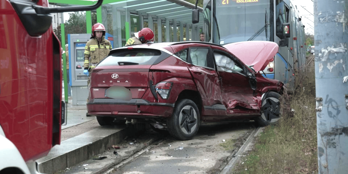 Według wstępnych ustaleń kierująca osobówką kobieta wjechała pod nadjeżdżający tramwaj. Po wypadku pojazd wpadł na torowisko. Na szczęście nikomu nic się nie stało, nie ma osób poszkodowanych.