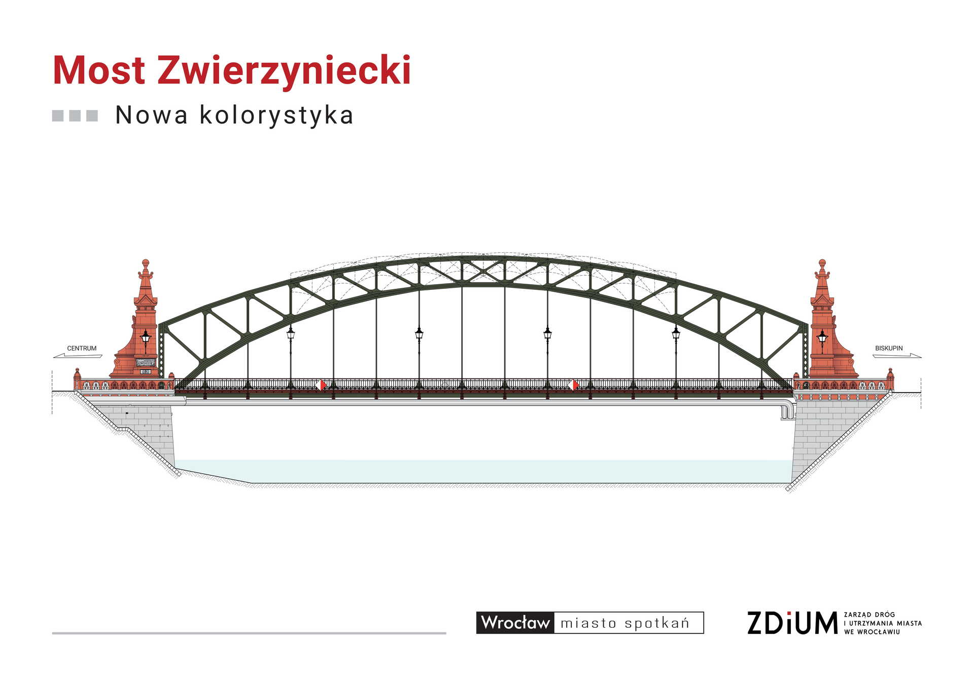 Badania stratygraficzne stalowych balustrad i części stalowej konstrukcji umożliwiły zaprojektowanie nowej kolorystyki obiektu. Wyniki prowadzonej przez ostatnie miesiące analizy trafiły do Wydziału Architektury i Zabytków Urzędu Miejskiego we Wrocławiu, który uzgodnił tę kwestię z Miejskim Konserwatorem Zabytków, Magdaleną Wankowską. Dzięki temu most Zwierzyniecki już wkrótce odzyska oryginalne kolory.
