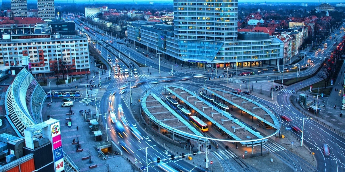 - zajęcie dwóch pasów jezdni oraz fragmentu zatoki autobusowej pl. Grunwaldzki za rondem Reagana od strony budynku,