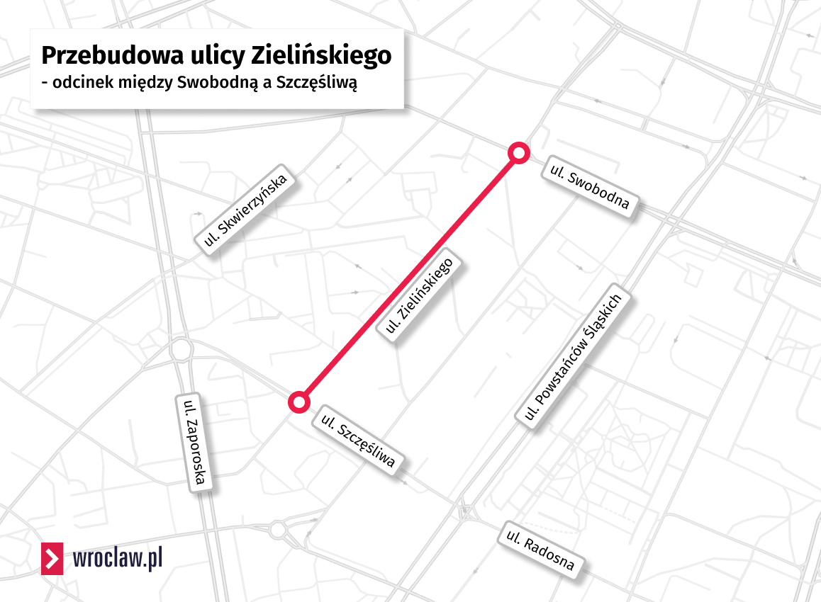 wroclaw.plNa mapie zaznaczony jest odcinek ulicy Zielińskiego, który będzie przebudowany