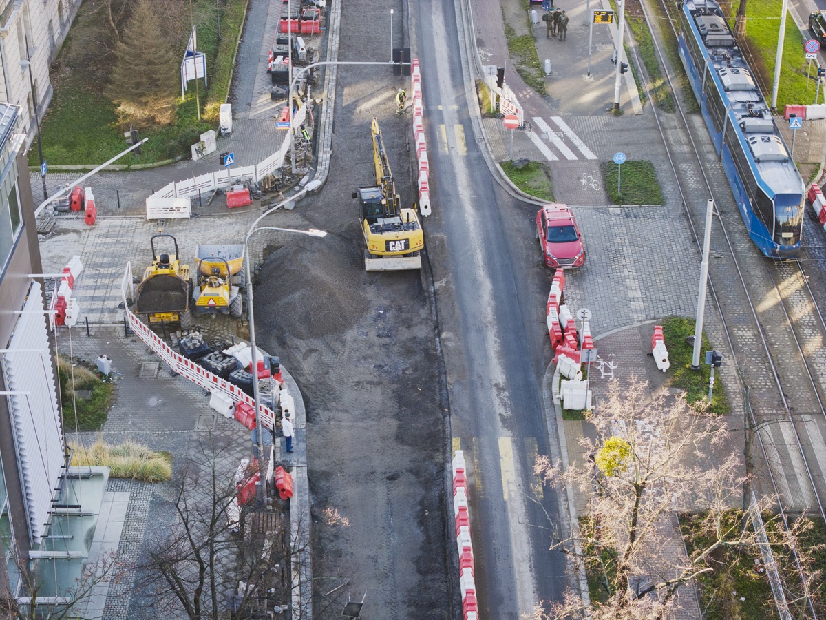 Na Powstańców Śląskich roboty trwają głównie w dzień, chociaż drogowcy część zadań realizują także wieczorem i w nocy.