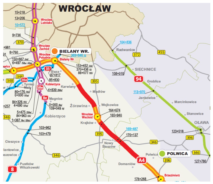 Remont podzielony jest na dwa odcinki, które będą odbywać się etapami. Każdy odcinek będzie wyłączony z ruchu pojazdów, a ruch będzie odbywał się dwukierunkowo na jezdni południowej (kierunek z Wrocławia do Opola). Na pierwszym remontowanym odcinku (ponad 9 km) wykonawca będzie realizował prace pomiędzy węzłami Brzezimierz, a Wrocław Wschód. Prawdopodobnie przełożenie ruchu z jednej jezdni na drugą nastąpi ok. 8 września. W trakcie trwania robót wprowadzone zostaną stosowne ograniczenia prędkości oraz zakazy wyprzedzania.